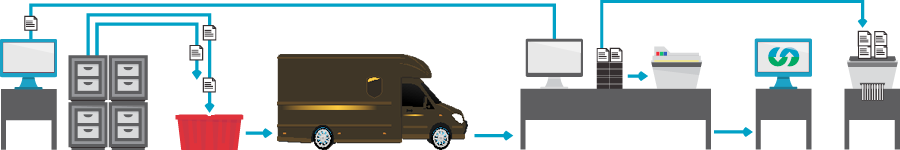 CloudDOCX has your totes and bankers boxes to our secure Scanning Center where all of the all totes and boxes are checked against manif est and the Scanning Center assumes security of your files.